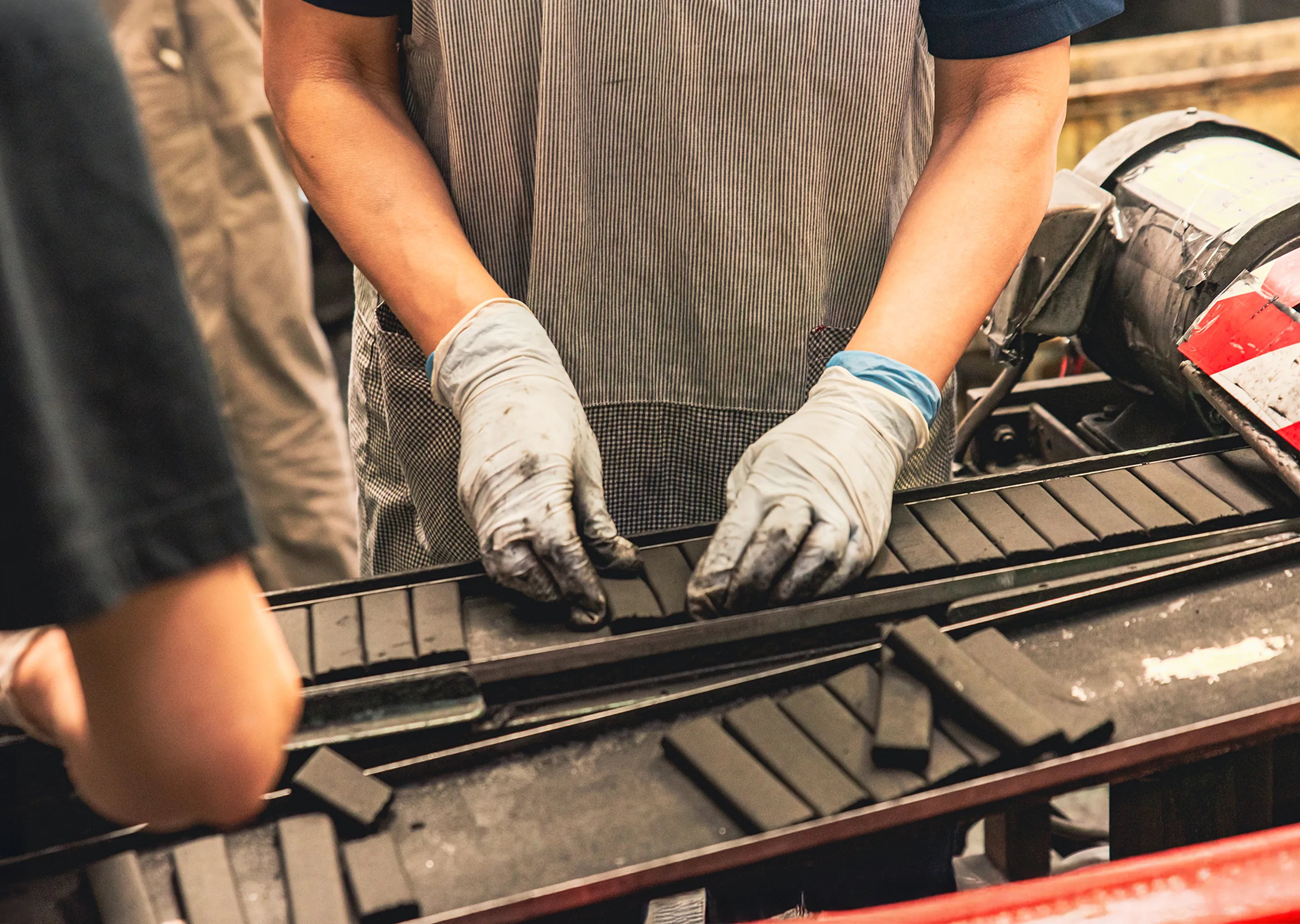 粉体の炭を混ぜ合わせ、成形・乾燥・検査まで一貫して行い、安定した品質を実現しています。